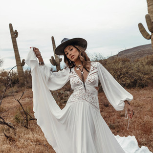 If you’re noticing a few boho babes jumping for joy this morning – it’s for good reason. The label of every boho brides’ dreams, Rue de Seine, is launching their new collection. It’s titled ‘Moonrise Canyon‘ and it’s a salute to all the brides who are wild at heart. True to their aesthetic which has made them a household name for boho brides around the world – the collection is a dream.
